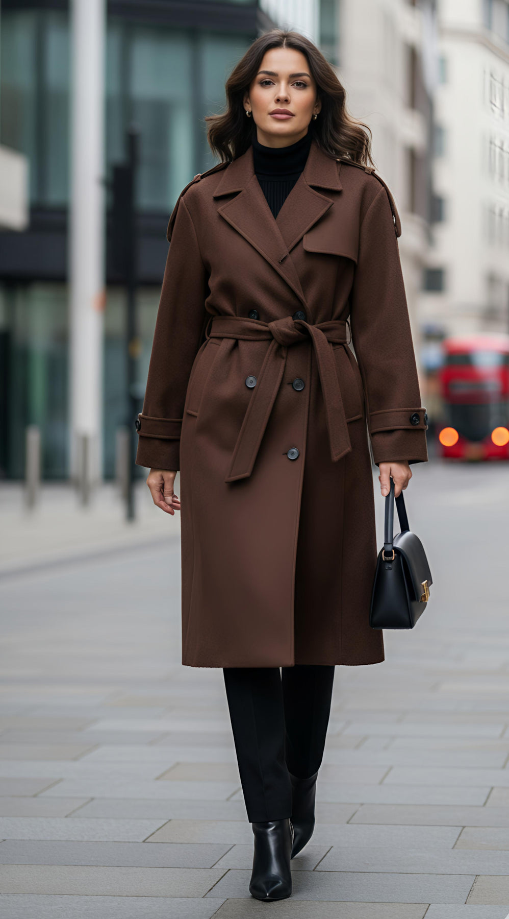 MIST HOUSE Double Breasted Belted Trench Coat Fall Winter Cloth for Women ONE SIZE UK 6-14/16